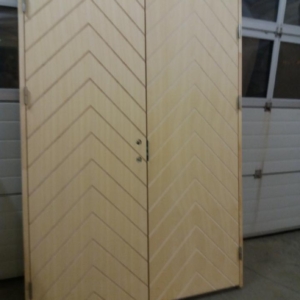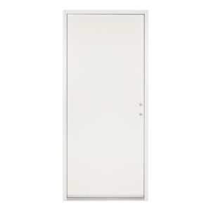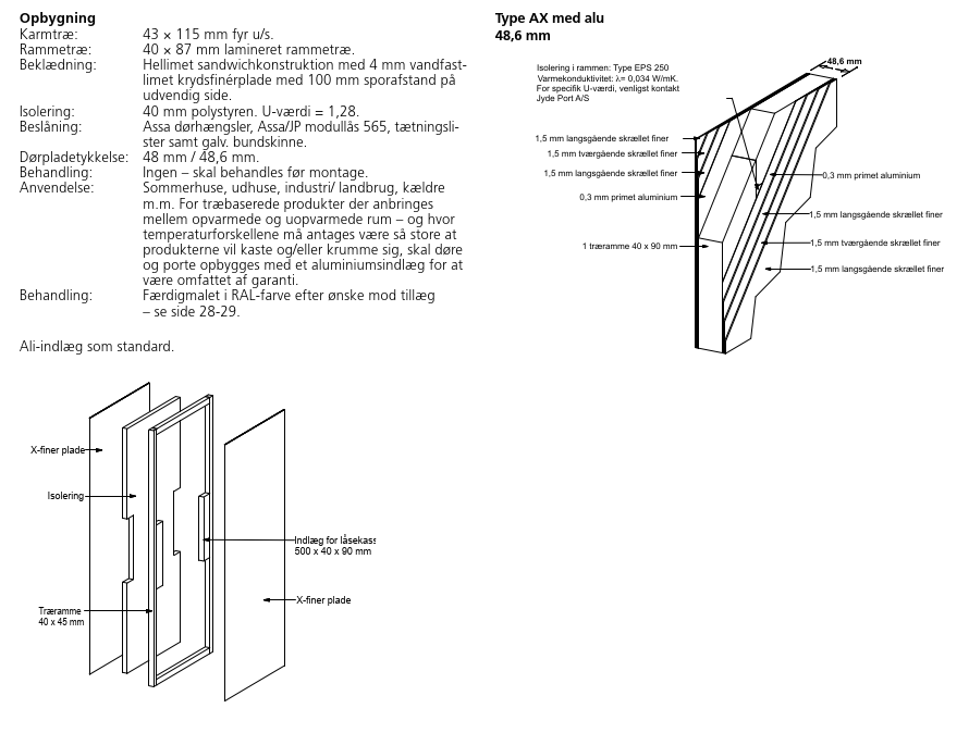 Er konstrueret som en hellimet sandwichkonstruktion med 4 mm vandfastlimet krydsfinérplade på begge sider. Pladen er glat. Døren kan umiddelbart anvendes som garage/udhusdør, men kan også anvendes som fx sommerhusdør. Anvendes døren som sommerhusdør, skal den monteres med 3-punkt lukke og bundstykke for at garantien dækker.