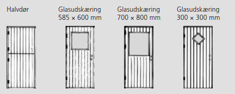 | RUDER – (NB: type L og B kan ikke leveres med rude) | Priser (Kontakt os) |